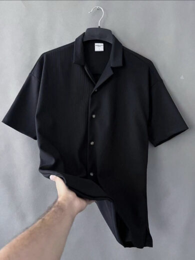 Men luxury oversize black cuban collar shirt
