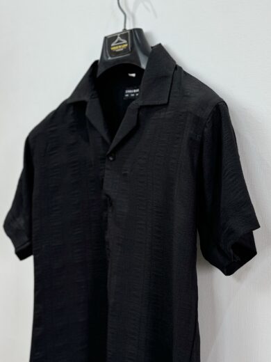 Black popcorn textured half sleeves shirt